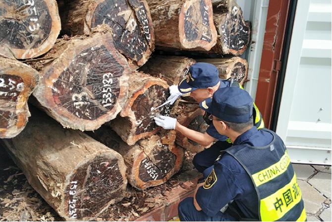 Recently in Gongbei Customs District, Zhongshangang Customs House inspected a batch of logs from Guiana and found live insects in the timbers. Through laboratory identification, the insects were confirmed to be Coptotermes of the termite kind, a quarantine pest that is destructive to eco-environment. By far, the Customs House has kept the imported logs under strict quarantine with pest extermination process.