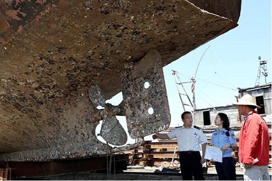 In recent years, Lianyungang Customs has been hitting petroleum product smuggling by sea. The 5 destroyed ships, earlier seized in such smuggling activities, were not provided with legal operational formalities, i.e. being without ship name/number, without certificate and without port of registry.