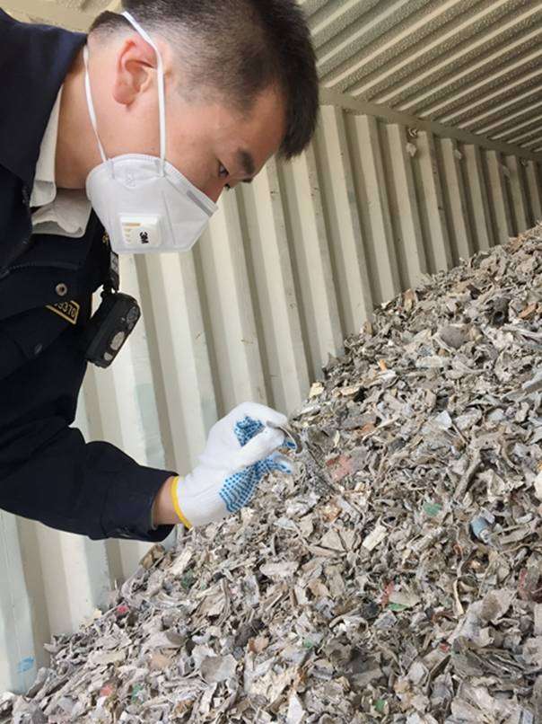 Dalian Customs officers were inspecting the solid waste.